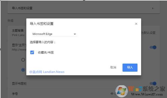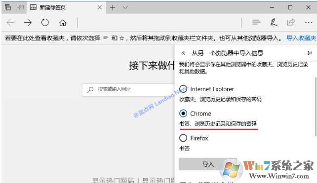 1、从Microsoft Edge浏览器把书签同步到移动端需要设置PC版浏览器,例如在Google Chrome中导入;