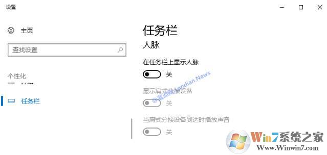 当然,不想显示“人脉”按钮图标也很简单,Win10中提供了简单的开关来让用户选择显示还是关闭;