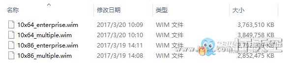 使用UltraISO工具分别提取以上四个原版ISO镜像中的INSTALL.WIM文件,并命名为10x64_multiple.wim、10x86_multiple.wim、10x64_enterprise.wim、10x86_enterprise.wim