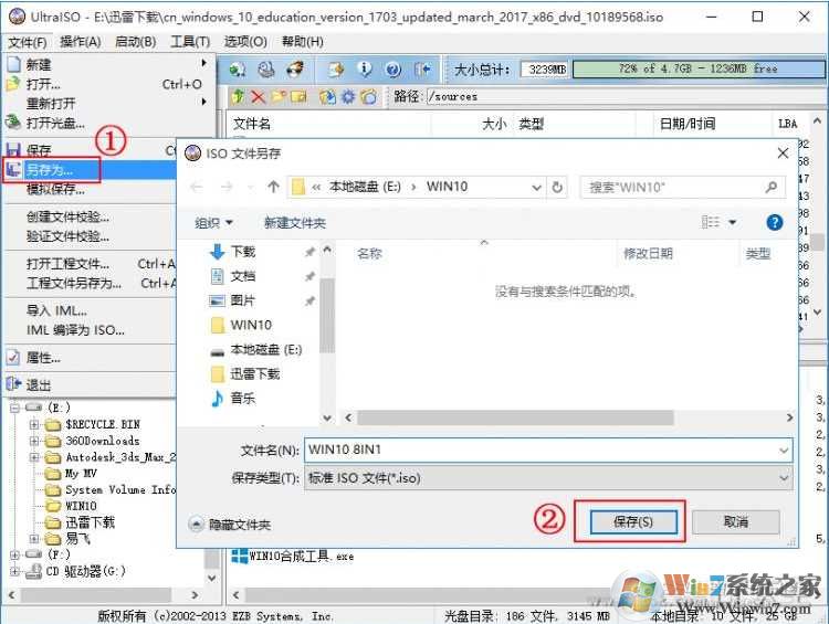 5、最后,我们要生成一个新的ISO镜像文件了,很简单,在文件—另存为,就可以!信相大家都会的!