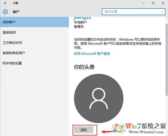 2、在弹出的“账户”界面的右侧,点击“浏览”如图所示: