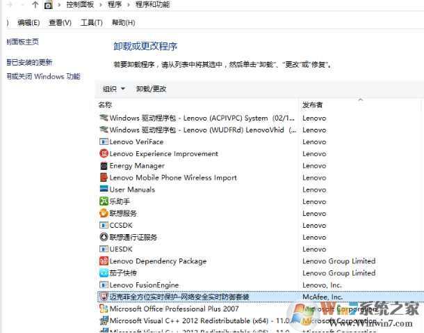 2:之后就来到我们的第二幅图,如下,找到迈克菲(Mcafee)软件,右键卸载。