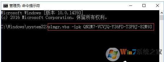3、接着输入:slmgr.vbs -ipk QN2M7-VCVJQ-Y36FD-T3PHJ-82M93(载入密钥)按下回车;