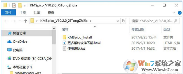2、将kmspico 压缩包解压出来;