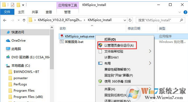 4、然后运行KMSpico_setup.exe(以管理员身份运行);