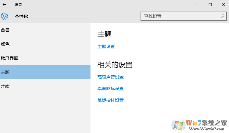 2、在设置窗口,找到“主题”,点击“主题”选项,右侧会有更多选择,找到并点击进入“桌面图标设置”。
