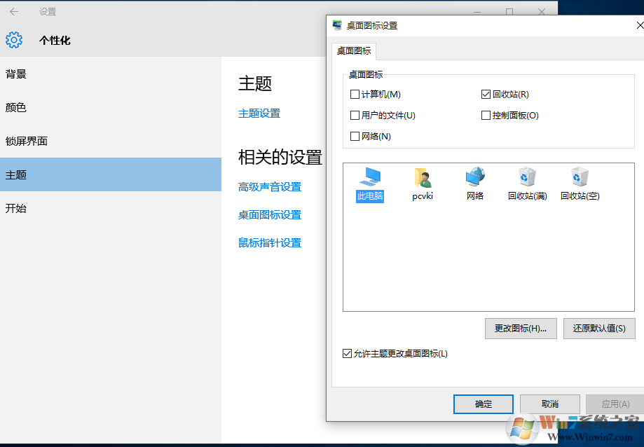 2、打开桌面图标设置后,勾选要显示的项目,然后应用即可。同成功激活中第3步一样操作即可。