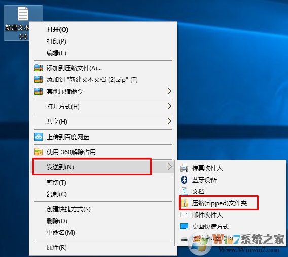 在文件或文件夹上点击右键,选择“发送到 – 压缩(zipped)文件夹”即可把选中的文件或文件夹压缩成同名的zip格式的压缩文件。