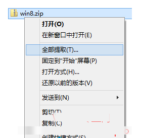 1、在zip格式的压缩文件上点击右键,选择“全部提取”。