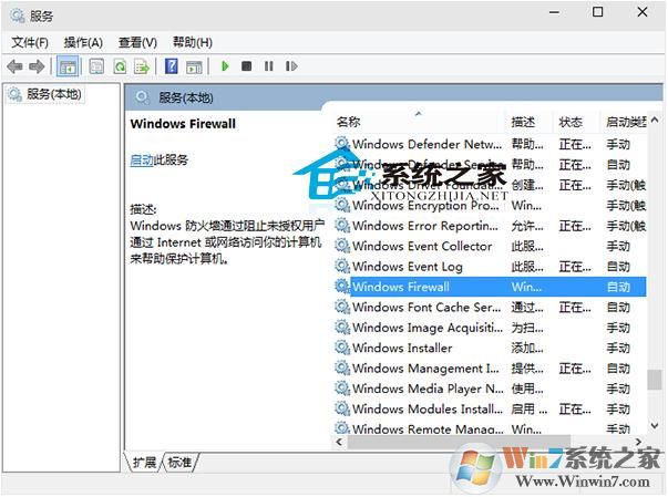 2.在服务里面找到Windows Firewall,双击,在启动类型中选择“禁止”。