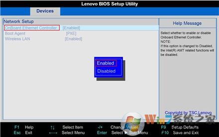 如是因为BIOS中没有开启网卡导致的,我们需要在BIOS中开启网卡。由于BIOS界面多种多样,选项各不相同,这里只简介一种,大家参照着设置。