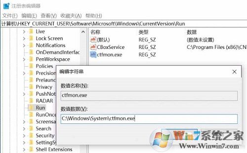12、然后,双击这个新建的ctfmon.exe字符串值,在弹出对话框内的数值数据中填写“C:\Windows\System\ctfmon.exe”(具体以自己安装的Windows文件目录为准)后确定退出就可以了。