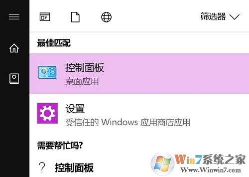 8、在开始菜单输入“控制面板”进入设置项,注意可不是Win 10的“设置”。