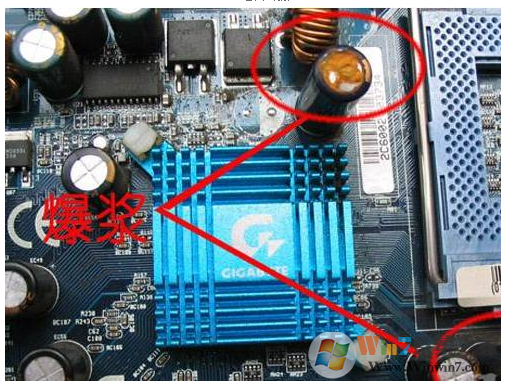 四、最后,如果上述方法都没有解决问题,那么就要检查主板了,主要检查主板上的电容是否爆掉?主板是否接触到了机箱背板导致短路等方面,通常爆掉的电容从外观上就很容易察觉!电容鼓胀、爆浆!