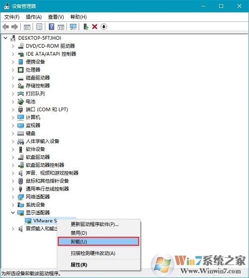 2、在里面展开【显示适配器】,在显卡上面点击右键,然后选择卸载按钮;
