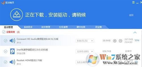 4、卸载驱动以后,用驱动光盘重新安装驱动,或者官网下载设备的显卡驱动重新安装,也可以使用【驱动精灵】、【驱动大师】等软件来重新安装显卡驱动,然后自动识别设备驱动进行安装。