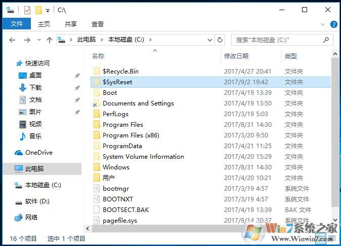 Win10系统下C盘$SysReset文件夹是Win10系统使用过重置功能,或者重置打开过后产生的一个文件夹。系统重置后一般还会产生一个Windows.old文件夹。这里需要提醒大家的是,Win10系统可以通过系统自身重置功能,自动恢复系统到出厂设置!