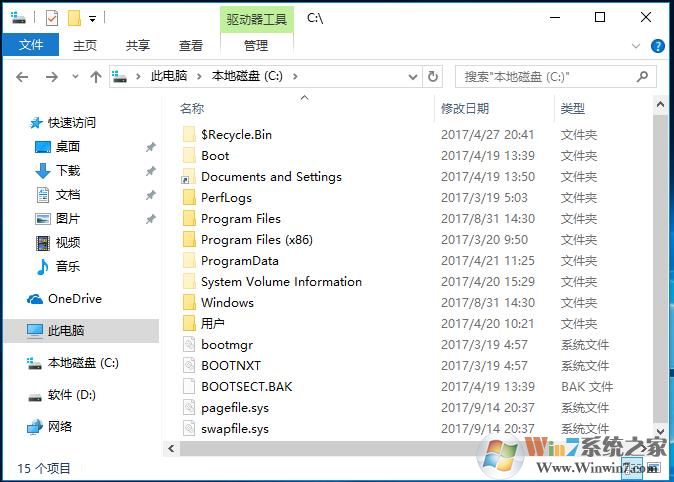 首先是win10 C盘根目录,大家保持和上面图示的文件、文件夹即可,其他都可以删除。