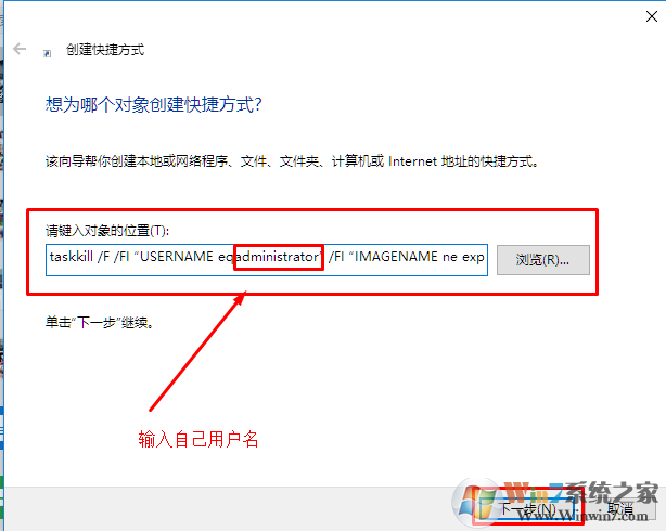 taskkill /F /FI “USERNAME eq用户名” /FI “IMAGENAME ne explorer.exe” /FI “IMAGENAME ne dwm.exe