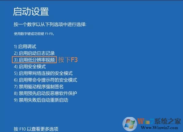 5、这里我们点击“重启”,然后选择“启用低分辨率视频模式”进入系统;
