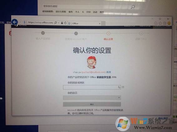 7、点击登录后需要设置国家或地区和语言选项,选择对应的,然后确认;