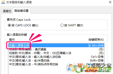 5、然后在[高级设置]->[输入语言的按键]一般选择设置[在输入语言之间切换]