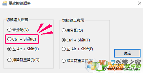 6、然后在这里把[切换语言的按键]更改为习惯的按键,应该是Ctrl+Shift吧,win7和XP大多都是这样使用的。