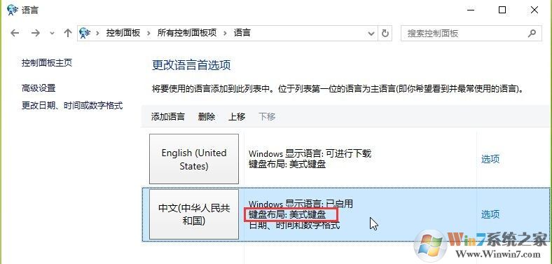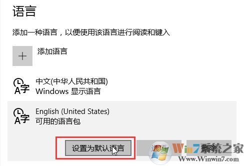 从“语言首选项”中进入方式的,选中“English(UnitedStates)”点击“设置为默认语言;从控制面板进入的,选择“English(UnitedStates)”,上移到首项。然后将”中文“语言删除。