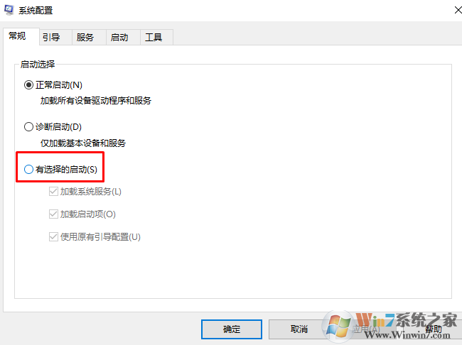 切换到“常规”标签页,单击“有选择的启动”,然后单击以清除“加载启动项”上面的勾。