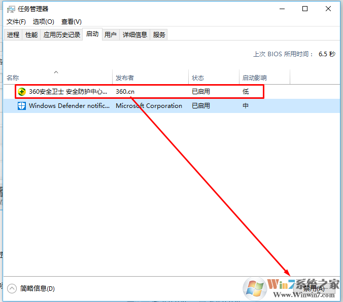 打开任务管理器,看下启动中,是否有第三方的启动项。如果有的话手动关闭看下情况。