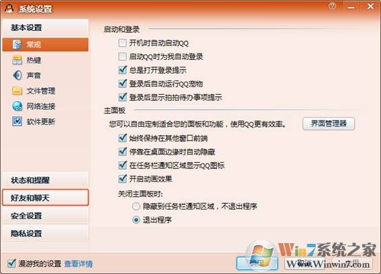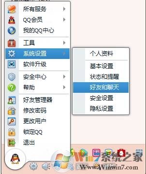 2、登录成功后,点击左下角主菜单,依次点击,系统设置,好友和聊天,单击进入;
