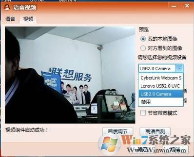 4、进入视频设置首先看到的是我的本地图像,您可以查看视频设备,比如我这现在看到的有四个选项.联想笔记本一体机大多数都自带摄像头,带Youcam软件的将会有第一个选项,其中你可以选择的摄像头有两个,一个是本机自带,一个是USB摄像头。选中以后将会看到本地图像;