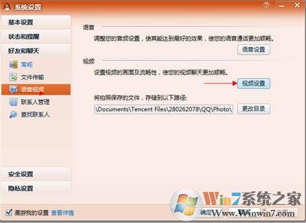 (3)点击语音视频,在这里我们也可以看到视频设置,语音设置,更改目录;
