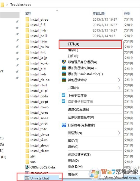 三、解压后,点击Uninstall.bat ;