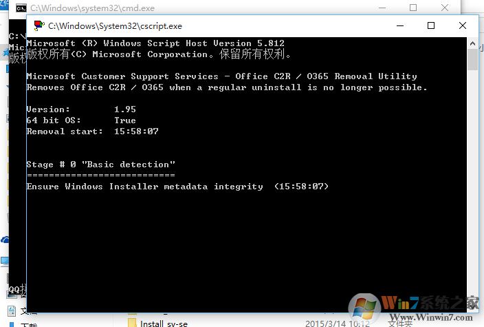 四、运行后会出现两个dos黑界面,等待完成后,会自动消失,接着你就可以重新安装Microsoft office 2016了。
