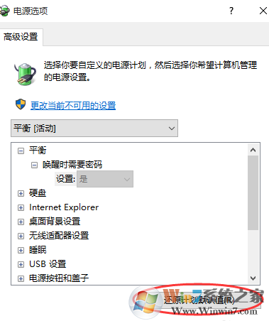 4、选择“还原计划默认值”;