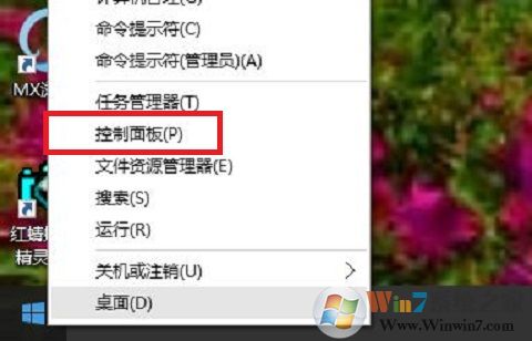 1、右键点击开始菜单,选择弹出菜单中的“控制面板”,如图: