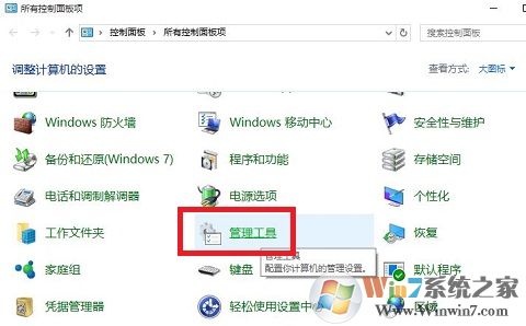 2、在控制面板里点击“管理工具”,如图: