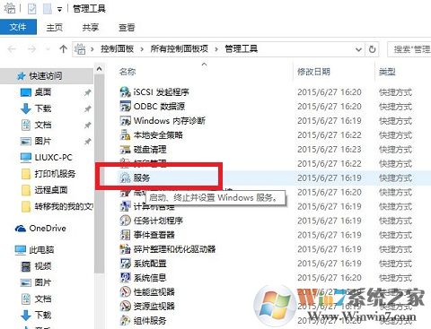3、在管理工具的窗口选择“服务”,如图: