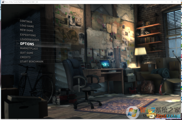 1.首先打开古墓丽影,在主界面,选择options (设置)