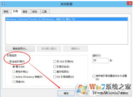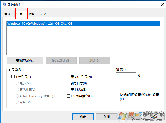 2、点击打开系统配置窗口,选择引导选项卡,如下图所示。