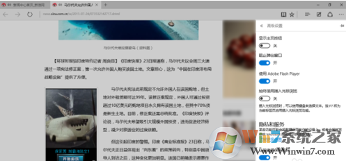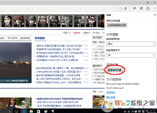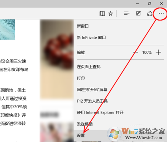 10、点击 Edge 浏览器右上角的“三个点”的按钮,在弹出的菜单里单击“设置”。但是在弹出的“设置”菜单里,并没有关掉 Flash 动画的开关。以上步骤只是关闭了打开页的Flash 播放,往下拉点击菜单底部的“查看高级设置”;