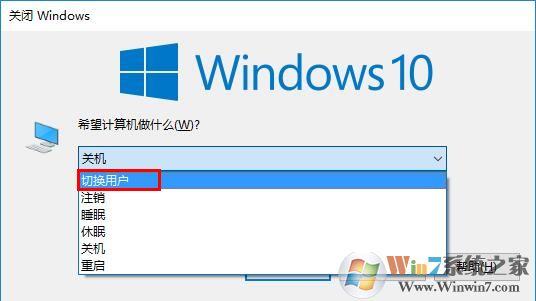 2、此时再同时按下“Alt+F4”组合键,屏幕中央会弹出“关闭Windows”窗口,在“希望计算机做什么”下方的下拉菜单中选择“切换用户”,并点击“确定”即可。