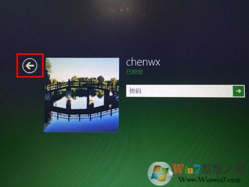 3、此时系统会切换到登录界面,点击当前帐户头像的左上角的反向箭头,如下图: