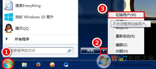 1、点击“开始”按钮,点击“关机”按钮右侧的箭头,选择“切换用户”;