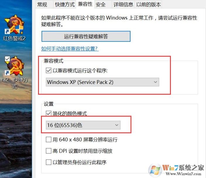 单一对游戏的兼容性设置无效,但可以使用其它的调试方案,红警2在WIN10下的设置方法,如下: