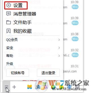 1、登录QQ之后,我们点击下方的三横 然后点“设置”;