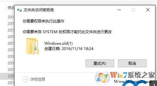 不过直接删除会提示权限不足,而且强制删除可能还会导致现在的系统崩溃,正确的方法是使用磁盘清理来删除。