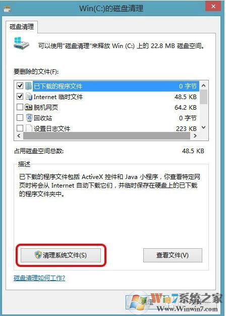 3、扫描之后,我们再点击“清理系统文件”按钮,如下图所示