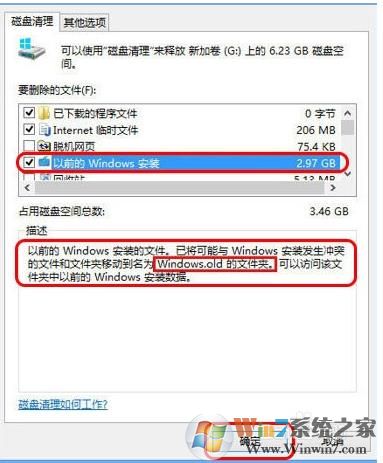 4、再次进行扫描,之后会出现一些可清理的选项,我们勾选“以前的Windows安装”然后点击确定开始清理和删除~